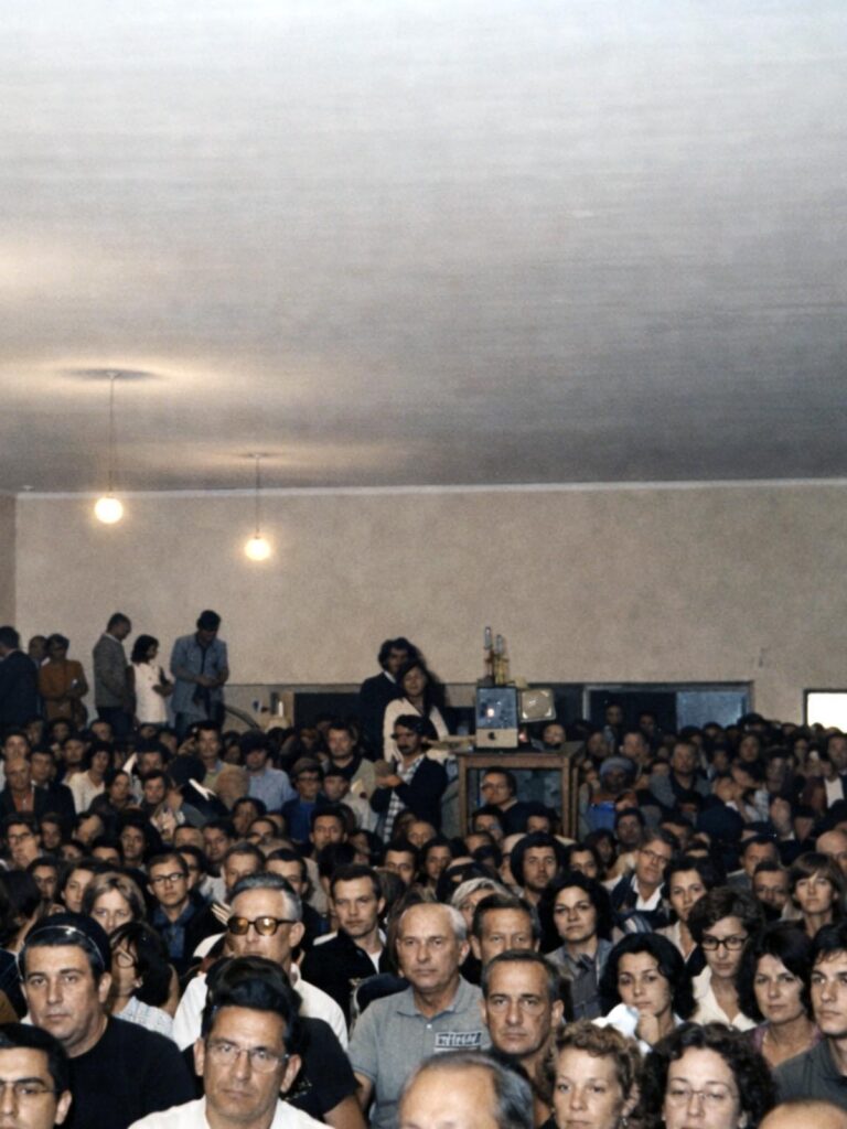 Cuando terminamos la proyección de prueba, Beto me sorprende diciéndome: “Tomá, llévate la película y aparece con ella sobre la hora de proyección”. Para que entiendan esa indicación imperativa, que ahora suena extraña: esas épocas eran, lamentablemente, violentas y difíciles, y había que tomar precauciones. Recuerdo llegar al salón de AOMA desbordado de gente, entrar, cargar la película en el Bolex… ¡Presentación y proyección! Final de aplausos, abrazos y lágrimas de recuerdo para los protagonistas originales de la huelga.